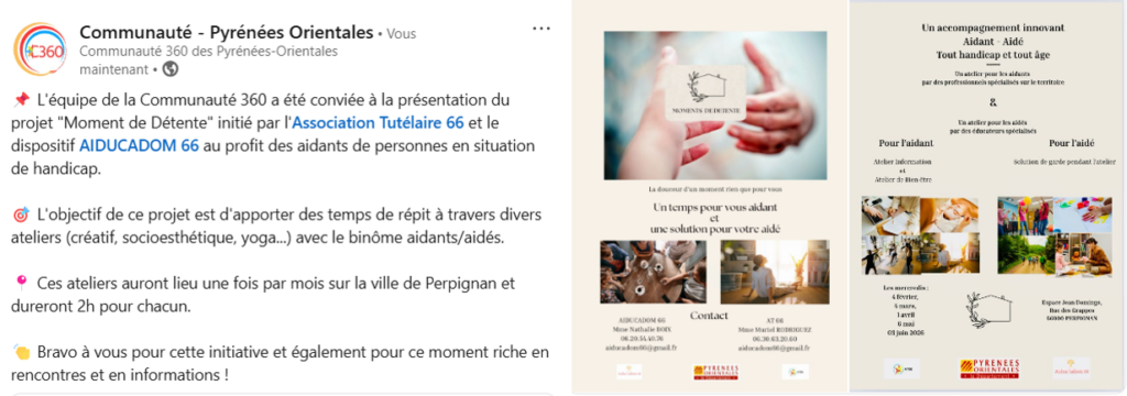 ✅Participation à la présentation du projet « Moment de Détente » destiné aux aidants en situation de handicap, organisé par l’Association Tutélaire 66 et le dispositif Aiducadom (21/01/2026) :