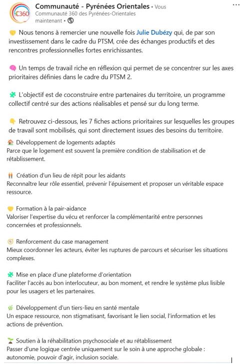 ✅ Retour sur le groupe de travail du 29 janvier 2026, organisé dans le cadre du PTSM 2 sur la thématique « Parcours coordonnés et maintien en milieu ordinaire » :